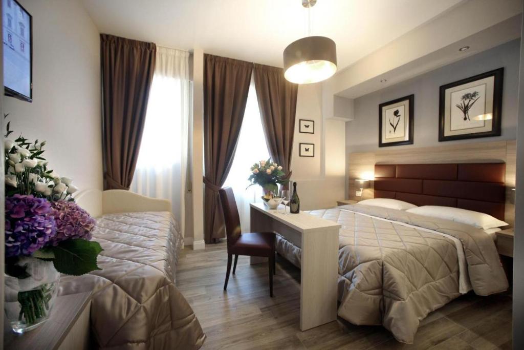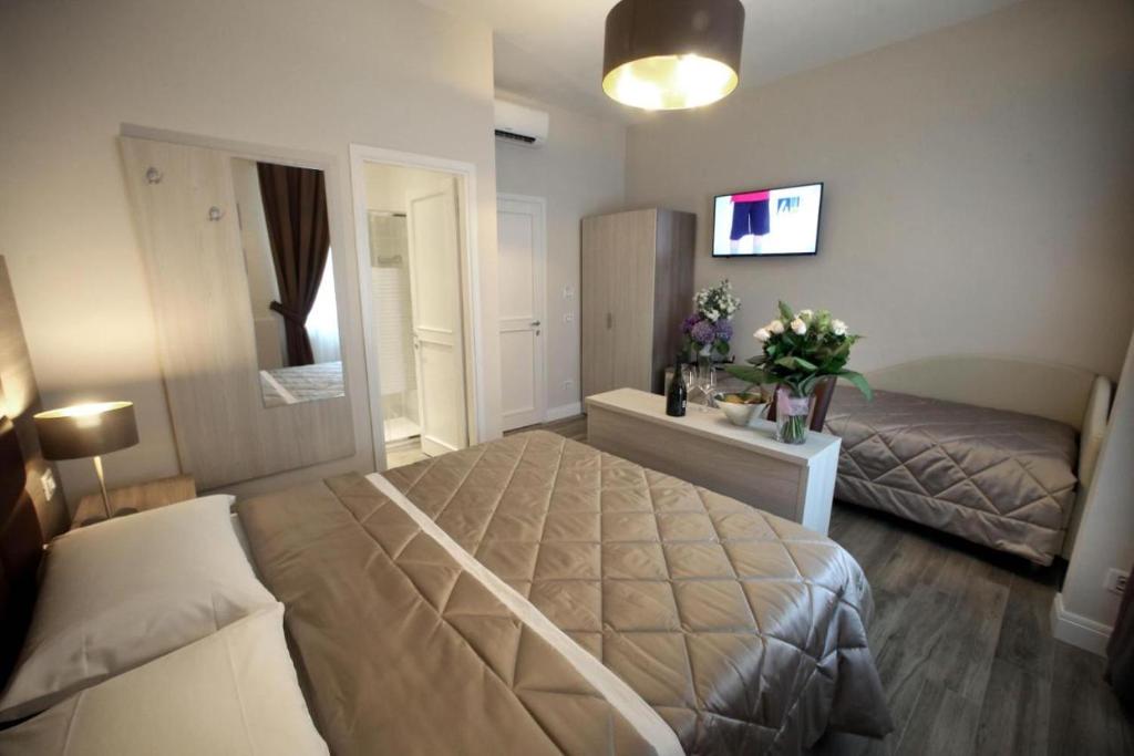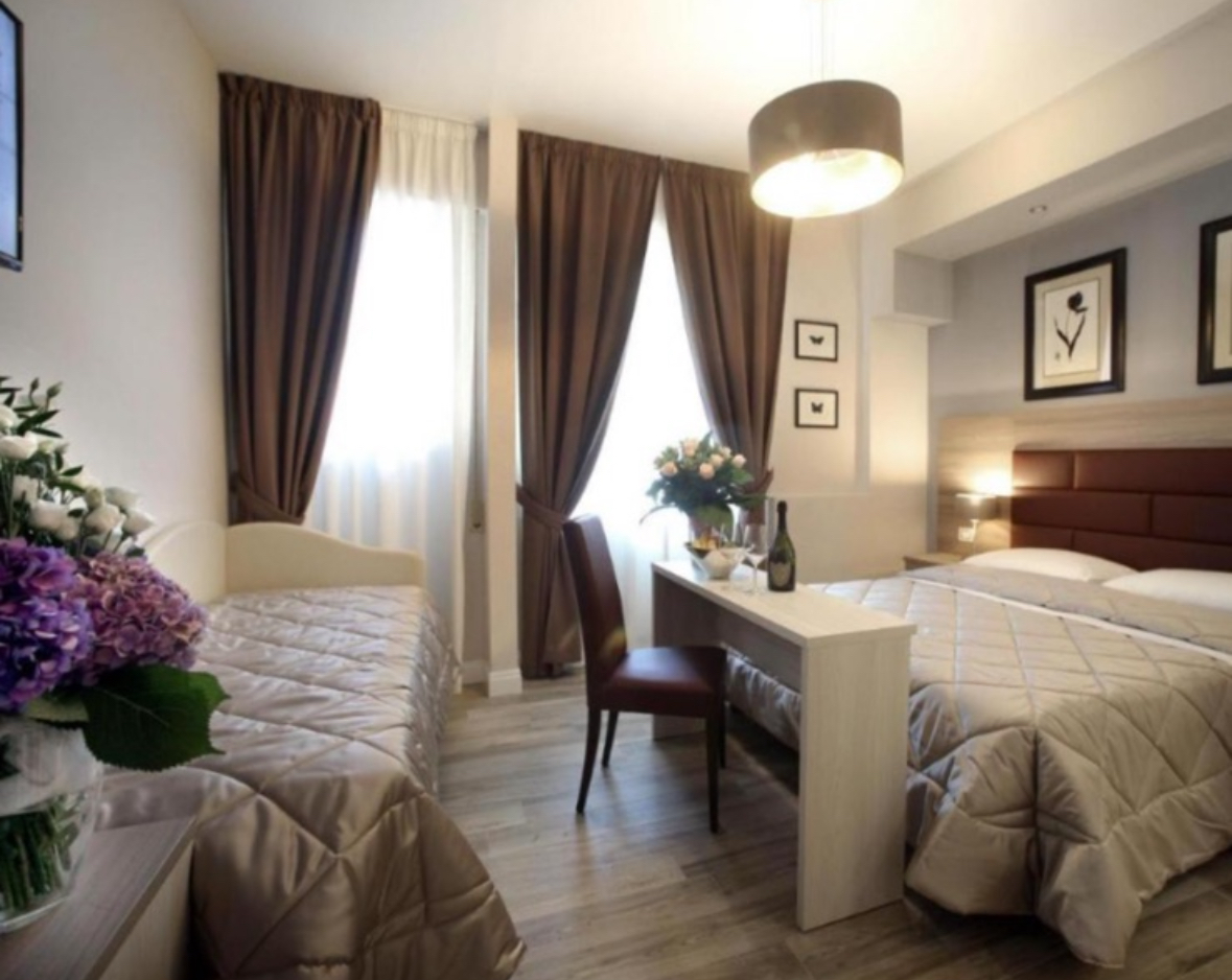 Camera tripla dotata di bagno privato con doccia, bidet, asciugacapelli, accappatoi e set di cortesia. Inoltre dispone di aria condizionata, pareti insonorizzate, TV a schermo piatto e cioccolato in omaggio.